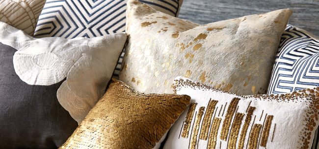 При выборе декоративных подушек для комнаты также советуем обратить внимание не только на цветовую гамму, но и на фактуру тканей. Например, яркие бархатные подушки можно сочетать с подушками из шелка или парчи. Универсальными вариантами шелковых и атласных подушек являются золотые и серебристые оттенки, они гармонично дополнят любой цвет и внесут краски в интерьер.