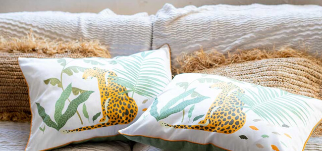 Для детских комнат, деревенского стиля или интерьера в стиле лофт замечательно подойдут подушки из натуральных тканей, таких как лен. Такие подушки сделают интерьер запоминающимся, однако не будут перетягивать на себя визуал помещения. Обычно изделия из льна имеют приглушенные оттенки, поэтому можно не боятся играть с цветами и оттенками, достаточно просто определиться с общей концепцией помещения.